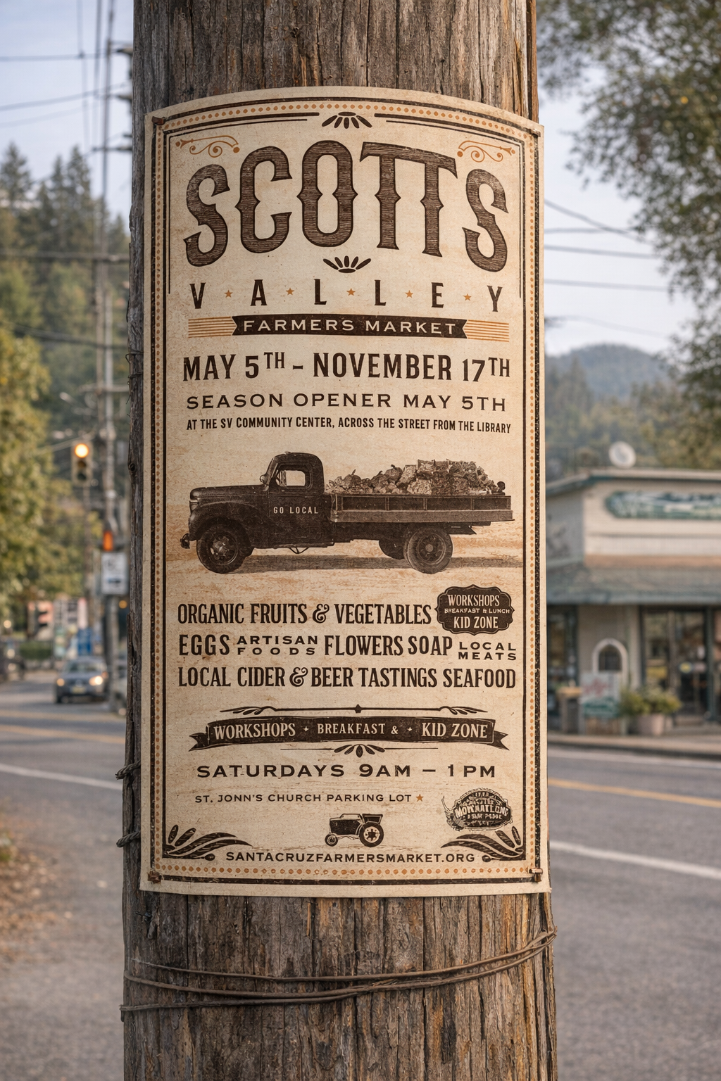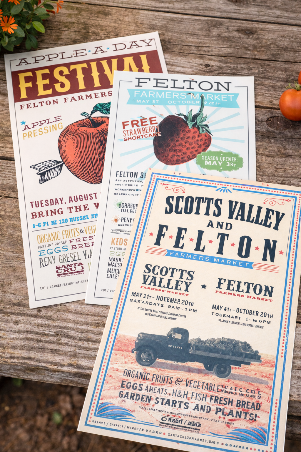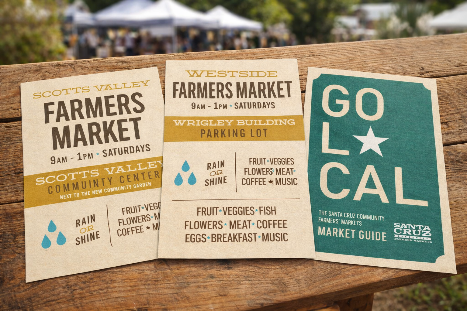 Once a new identity was put into place, I was able to formalize a more unified visual presence across the different markets in Santa Cruz. The various market signage and apparel have an updated, cohesive vibe throughout.