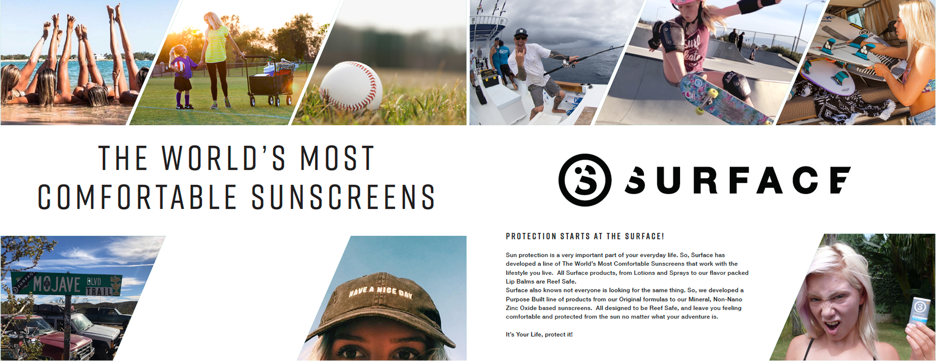 The Surface catalog was designed with a clean, product-first approach that directly reflects the simplicity and clarity of the packaging system. Typography, color, and layout work in sync with the sunscreen bottles to create a cohesive visual language across every touchpoint. Built for an outdoor, action sports lifestyle, the catalog balances performance-driven messaging with authentic coastal imagery—delivering a streamlined experience that feels both functional and rooted in surf culture.